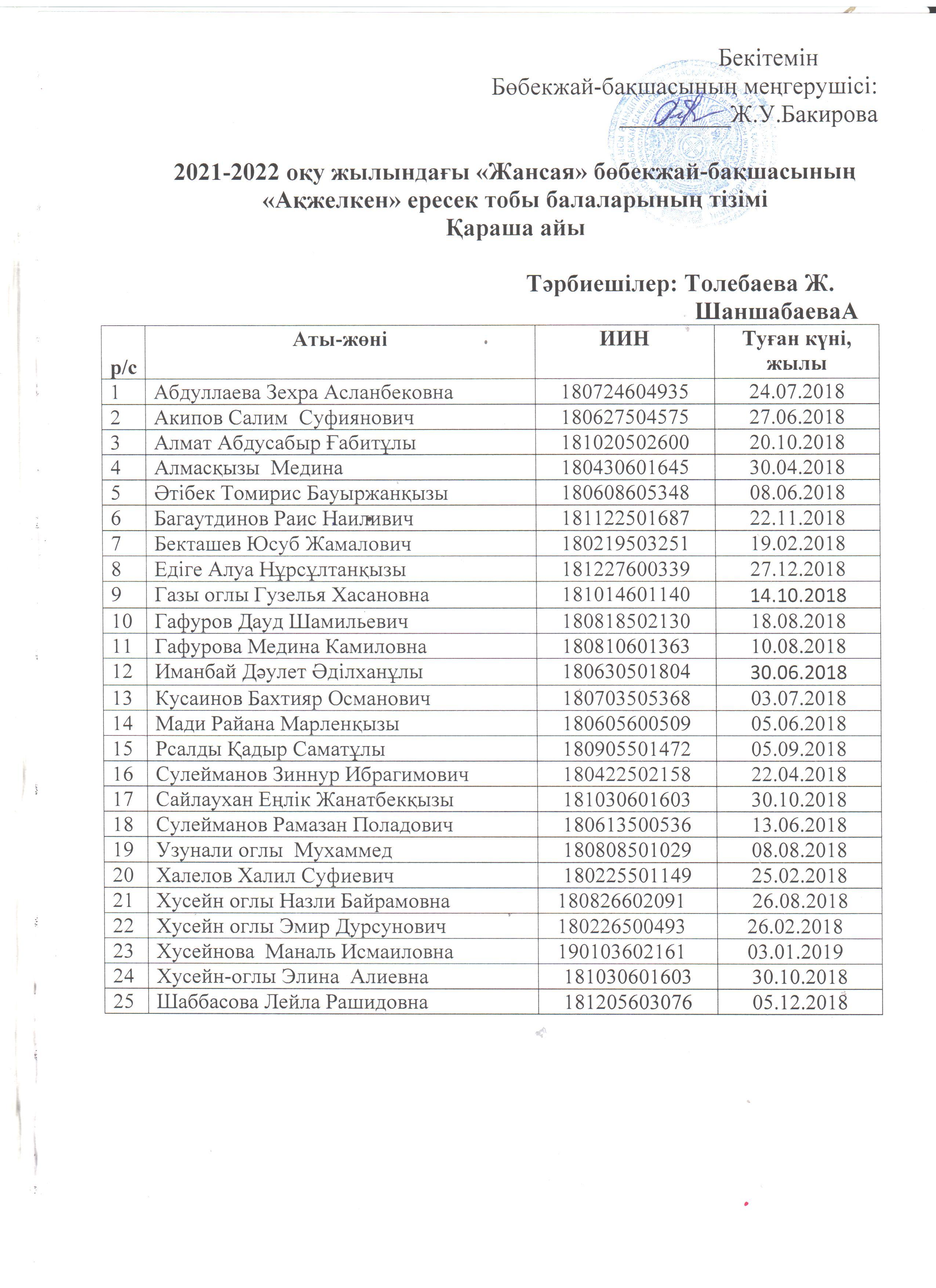 » "Ақжелкен" ересек тобы