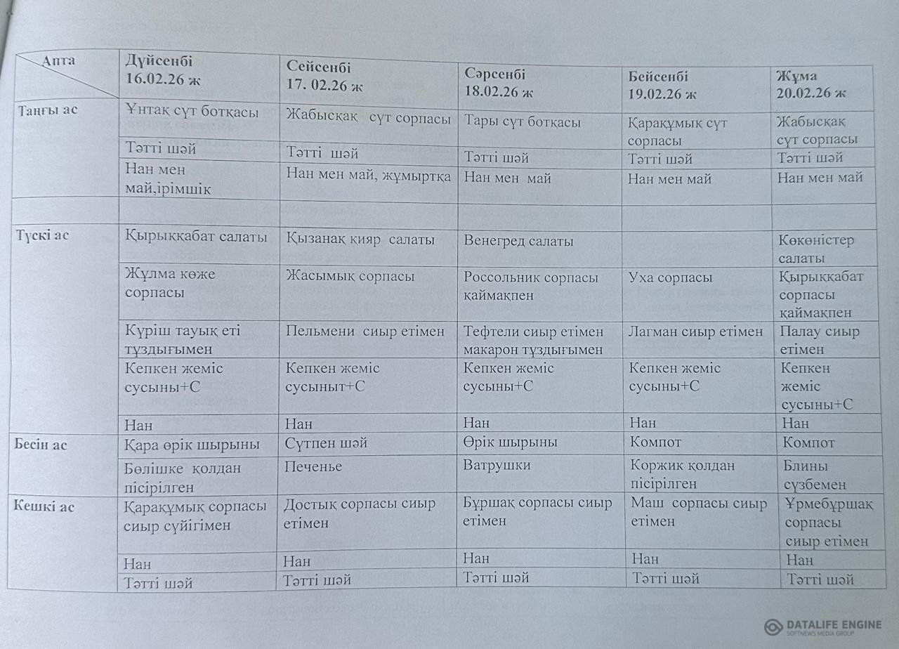 Ақпан айының ас мәзірі